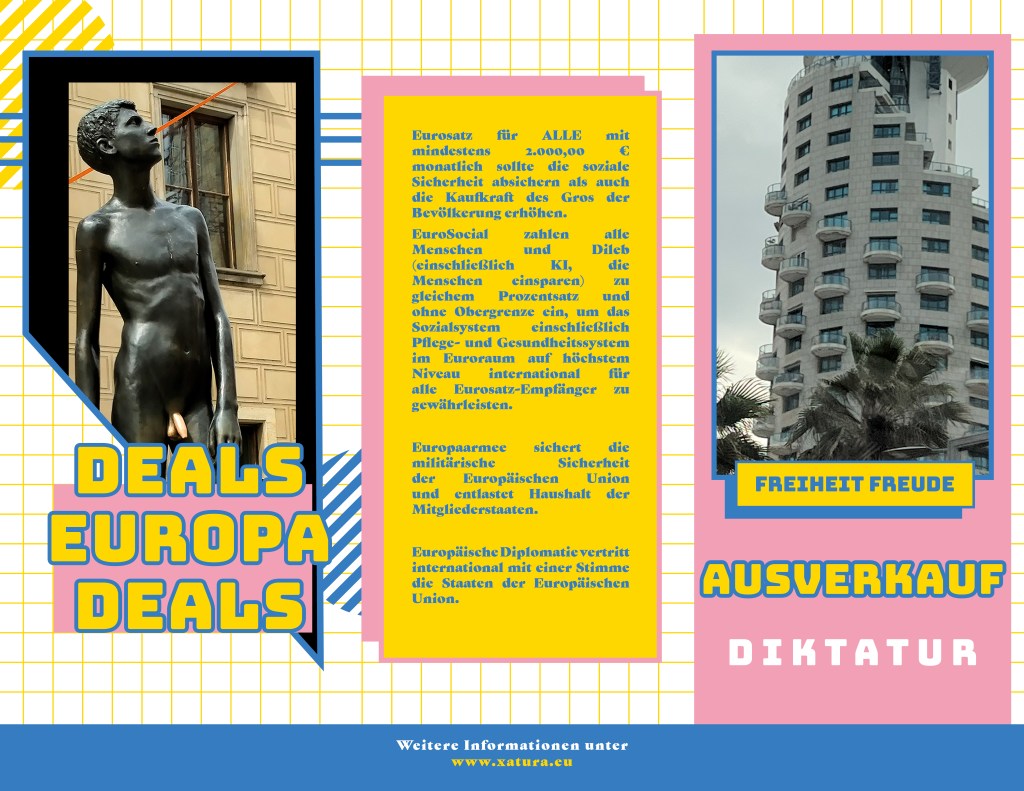 • Eurosatz und Wirtschaftliche Stabilität: Die Einführung eines „Eurosatzes“ wird als zentrale Maßnahme gesehen, um Europas wirtschaftliche und politische Zukunft zu sichern. Ohne diesen könnte Europa seine weltpolitische Rolle verlieren. Xatura könnte hier als Modell dienen, wie man diese Stabilität mit einem neuen ökologischen und sozialen Bewusstsein verbindet.