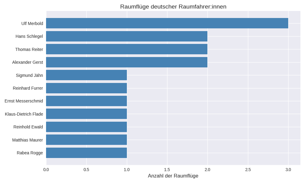 Damit haben sechs Deutsche tatsächlich mit sowjetischen bzw. russischen Raketen (Sojus) das All erreicht. D.h. Copilot hat das nicht beachtet und sechs Kosmonauten sind aus Deutschland. 7 Astronauten gibt es: Matthias Maurer, weil er mit SpaceX geflogen ist? Ulf Merbold, Reinhard Furrer und Ernst Messerschmidt sind als Astronauten geflogen, weil sie mit US-amerikanischem Raumfahrzeuge unterwegs waren. (siehe Tabelle am Ende der Seite)